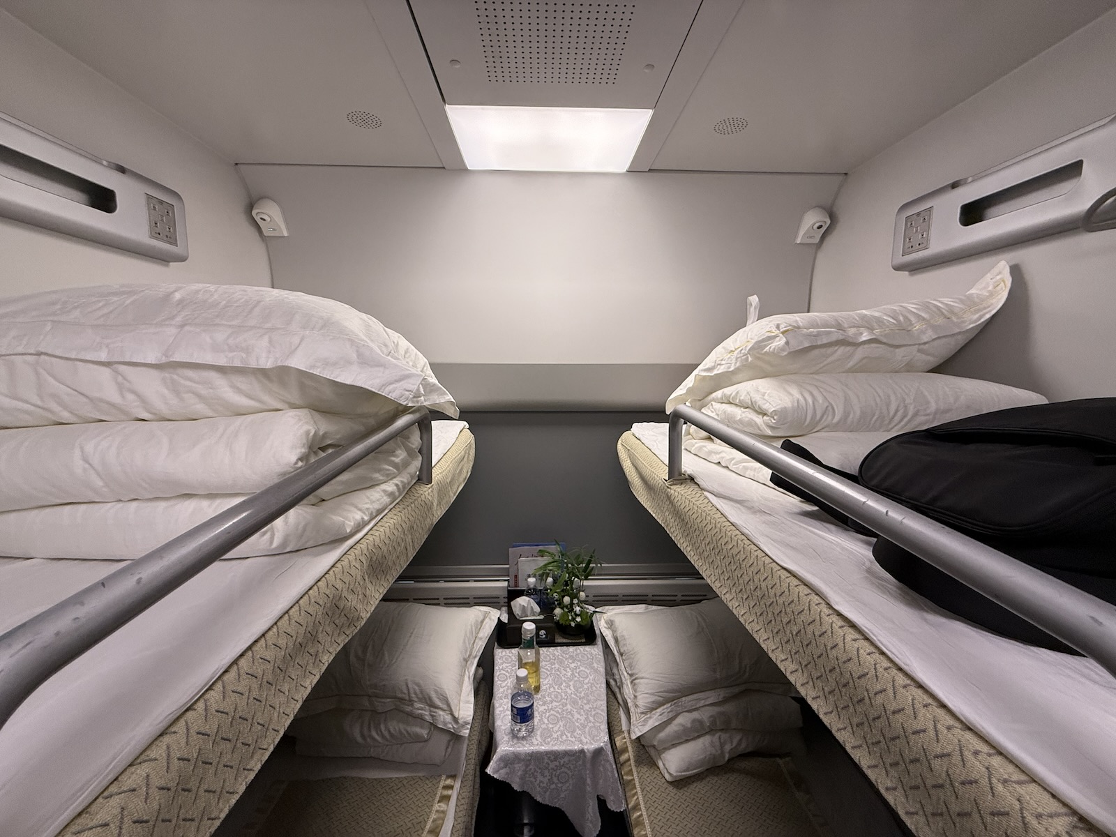 起初是想直接飞到正定机场看看,但发现从正定机场回家着实有些麻烦(这地铁到底怎么修的真离谱啊),于是改为体验一下七月新开的动卧 D968,上铺比飞机便宜一百多(下铺要再 +90,就跟飞机差不多了),比高铁二等座只贵十块钱。很有意思的是还有个人拿他在隔壁的下铺跟草民的上铺换了(应该是对小夫妻吧大概,想尽量在一个包间里面),就血赚。这动卧还真不错,主要是考虑时间成本的话性价比真的拉满,就是草民这一趟空调太差劲(今年这天气是真离谱吧,哪儿都是又潮又热),最终还是完全没睡好。中间有好多个车站都一停半个多小时,大概是为检修车让路 / 到站尽量是个天亮(事实上也确实是刚好天亮),估计要是不考虑这些的话八个小时肯定是能压进去的