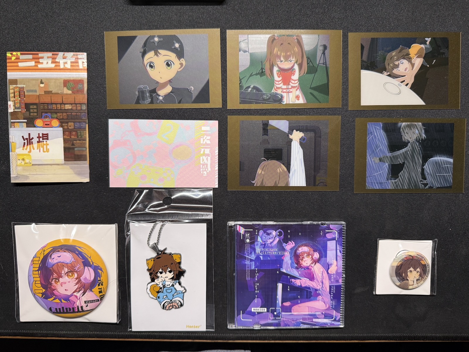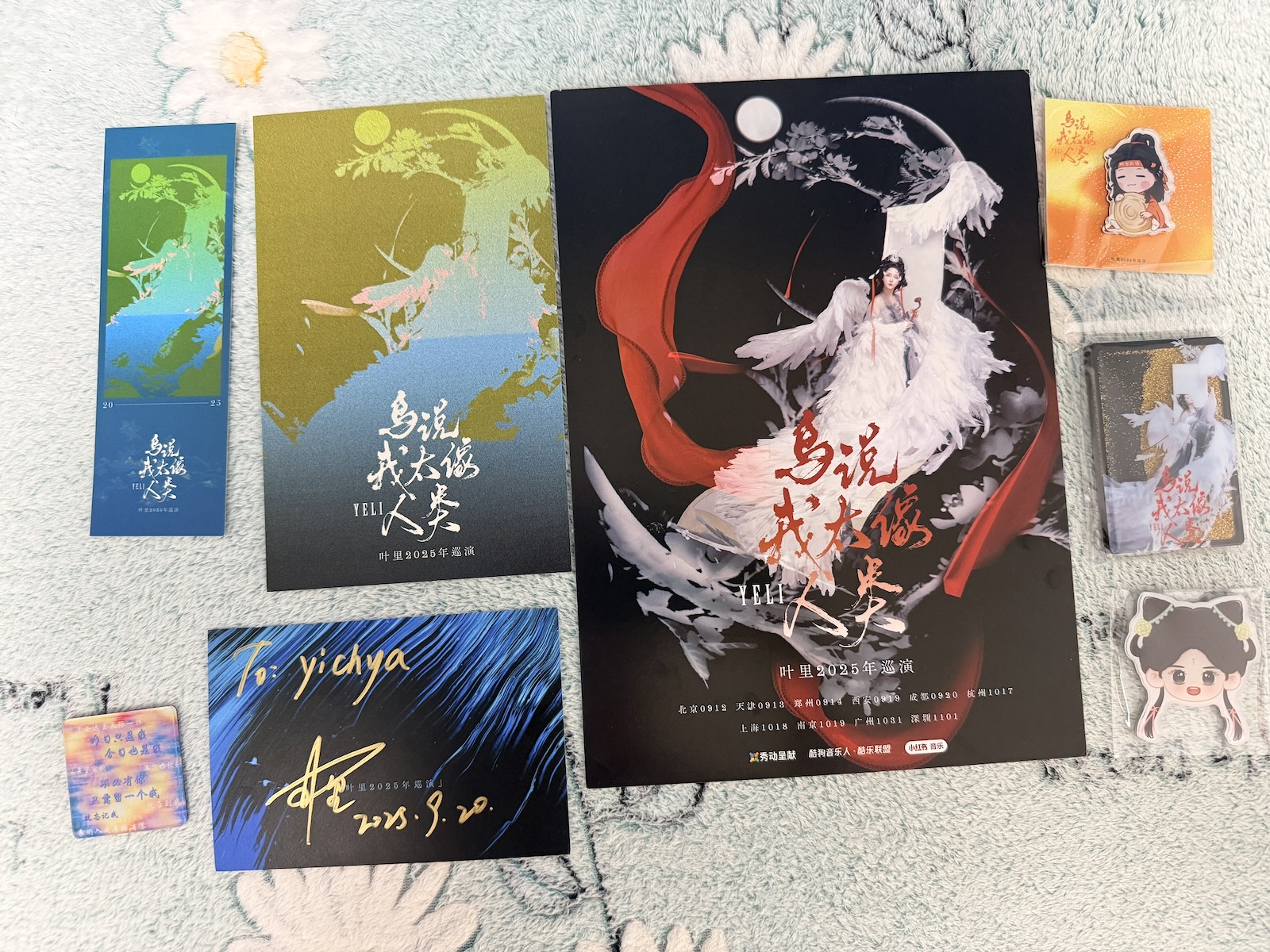 上面那个合影只能评价为跟🐦那个一样进行了一些很糟糕的切角(以及包看不到草民的,下面北京场倒是很容易找到)。出来的比较早(草民六月那会儿还认真考虑过当时看见 SVIP 排队会是个什么心态,结果真到那时候反而完全没啥想法了,只想赶紧溜),顺便线下真实某🥚群群友之后按之前计划的去看了追光新作《聊斋·兰若寺》,评价为追光刻板印象水平,画风还行、故事不咋样,总结为仅适合家长带娃来看。最后晒出一部分周边(为了把这个签名海报完好无损带回来,草民甚至拿了个专门装海报的纸筒过去,结果只能评价为有用但没必要