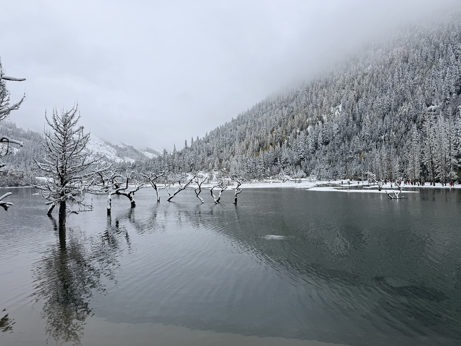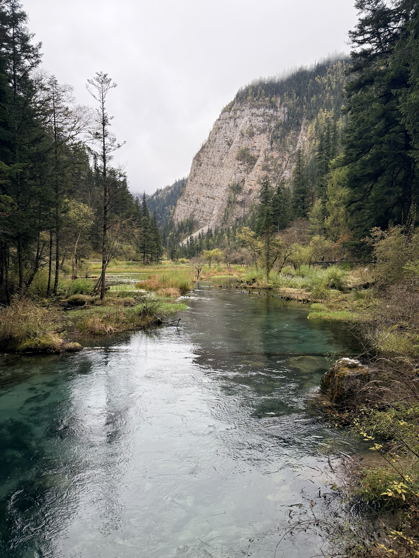 同样是跟上面这位大佬一起去的,这也导致去年立下的「明年不去九寨沟了」的 Flag 终于还是倒的干干净净。可惜运气一般般,彩林差不少火候,天气也不算好(放一张同一个位置的照片对比一下,大概都是上午十点左右的样子
