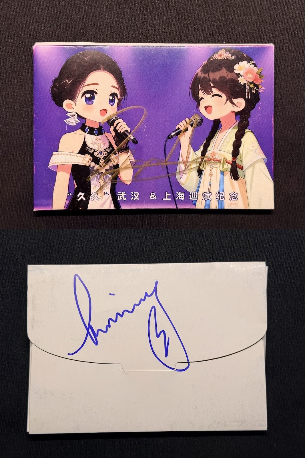 当然后面就要吐槽一下主办了。比上次好一些的是流程上至少留出了足够多的彩排时间:原来海报上写的也是三点到四点半互动,四点半入场这样,等于是又几乎没什么时间排练,然后三点多屁颠屁颠去到那边之后又被通知互动改为演出结束以后,虽然这样对演出效果更好但还是多少有点折腾。然后就是跟汉服节联动导致原定六点开始结果六点钟又突然进来一大车人要协商座位什么的,又往后拖了二十分钟;再加上场地是夜店的关系,人家晚上要正常营业以至于后面留给 VIP 观众的合影互动预定就只有大概不到半个小时,上面又拖了二十分钟导致这个环节突出一个匆匆忙忙连滚带爬……这里还要感谢某位大佬投喂明信片一包,终于不用纠结在什么东西上签名了,超级开心