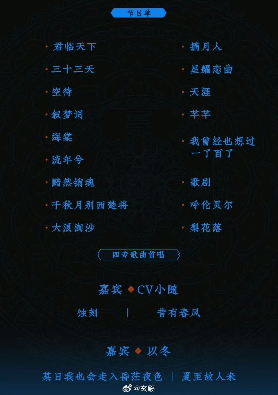 这个也是盼了很久很久,不过没想到第二场就在成都还是很惊喜的。虽然吧,杭州场有的《东风第一枝》这次给 Roll 下去了,有点怨念