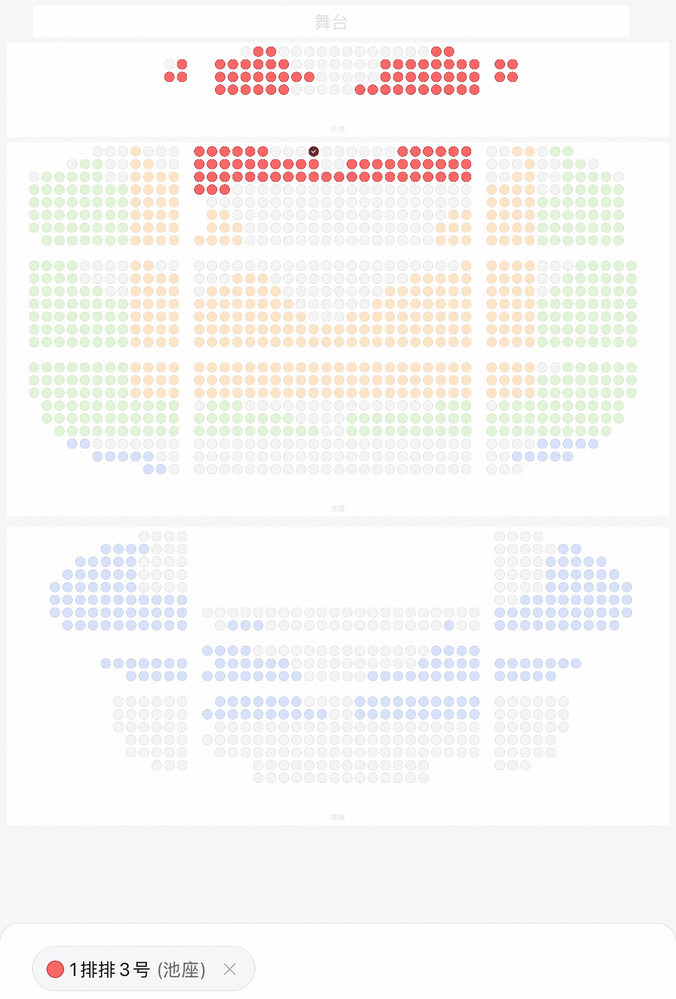 起初还是计划拉上马哥和维洲一起,不过马哥运气不太好第一次开票没抢到,第二次草民人刚好在🐰北京场结果所有人都把这事儿忘的死死的,维洲也因为类似原因两次都没安排上。本来以为没希望了,但是非常意外的是演出前一天出了一个比较难绷的事情:有一小部分相当好的座位主办方之前以为不能卖,然后发现实际上可以卖,那天晚上就突然拿出去卖了 = = 最后甚至还没卖完。虽然这个事情让几个群里的一大堆没开出好座位的人非常破防(有一说一这事儿确实是干的不地道),但是也因此让马哥有机会捡漏,最终还开到了一个非常好的位置(甚至后面他还在现场换到了一个更好的位置,视野比草民的还要好一些)。维洲就比较可惜,当天行程冲突彻底没机会了,下次一定(
