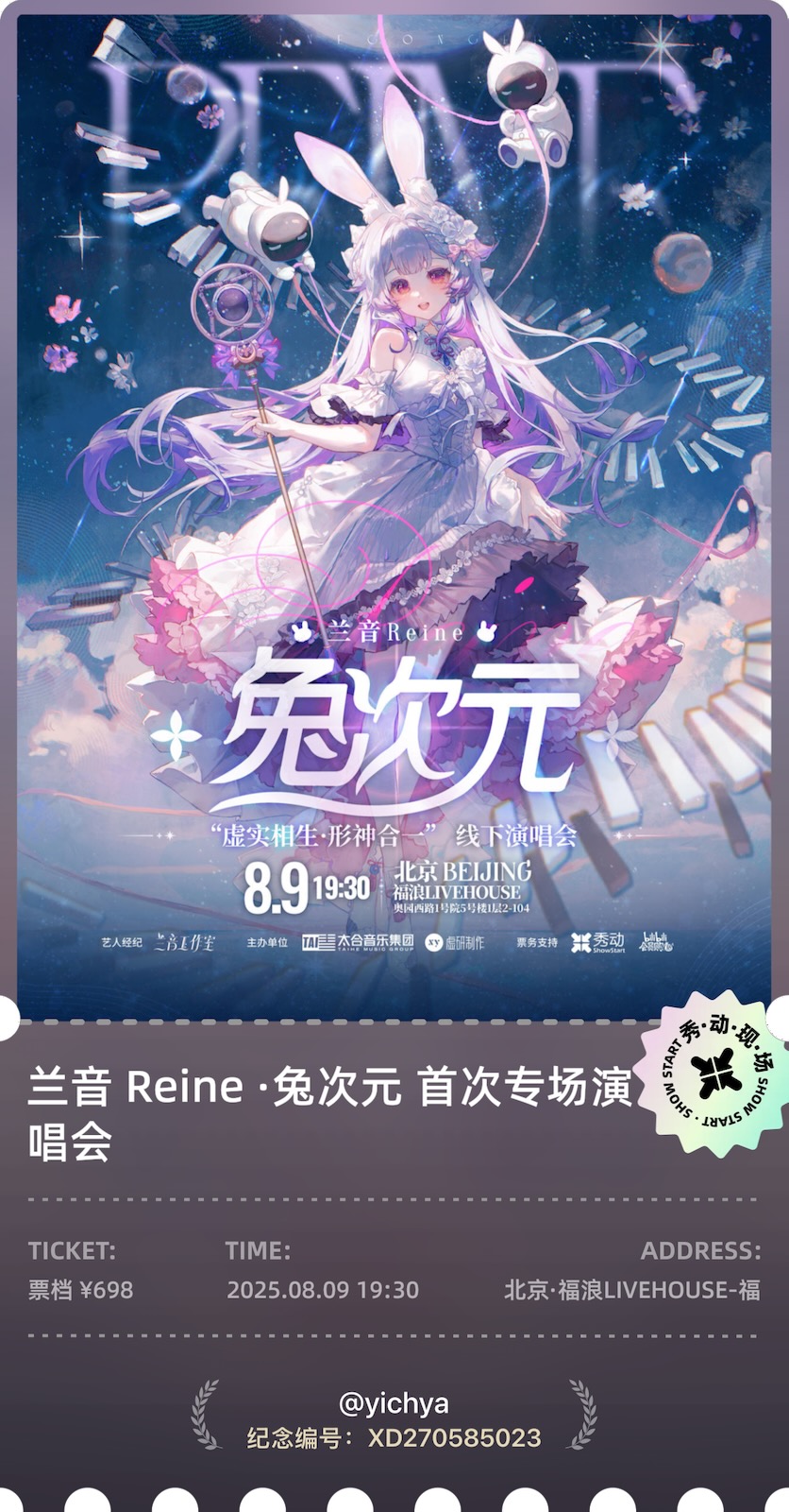 说到皮套人运气不好……8.8 那天🐦还在直播里面说明年可能会搞降低成本、提升覆盖面的 Livehouse 形式的巡演。有一说一这种确实比起🐦那两场大场地的靠谱,而且那个现场动捕是真没必要,so 许愿一个真人上台 + 有类似🐰这种 SVIP 特典环节吧(虽然感觉可能性不大