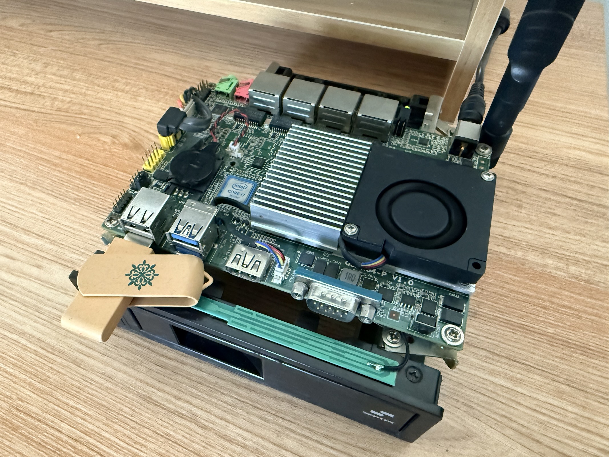 回家之前对网络的规划是 MicroPC + 树莓派,甚至也考虑了搞不好网络就认真弄 Custom Valine Server,但突然又想起来家里还有个退下来的老伙计可以支撑一下。事实证明老伙计依然靠谱,可惜硬盘位彻底寄了(去年八月份回来那次其实就坏了,当时还以为是什么偶然问题,这次又弄了弄还是没救回来),草民倒是考虑到了这一点,于是出发前就准备了个 U 盘 dd 进去了一个 OpenWrt,然后又因为下图这个摆法多少有点让人不踏实,于是在存储价格最高的时候买了个小米的 U 盘(买回来之后才又想起来家里还有一个更早之前 DIY 的 U 盘能用