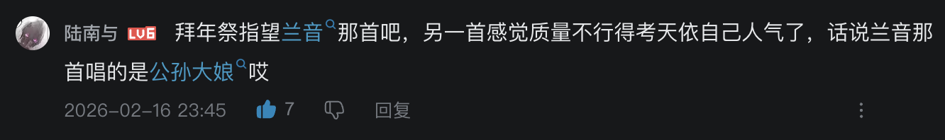 今年的预热力度似乎比去年还要大一点,甚至还有 BV1mmF6zkEra,估计也是官方觉得去年那几首歌的数据实在是太差?但感觉从预热漏出来的这一点儿看,今年还是不怎么能达到之前噩梦在的那会儿的水准,希望正片出来能扭转一下草民的看法,再不行的话干脆左转虚拟歌手贺岁纪去了。VSF 今年算是第一次认真从头看到尾,其中颇有几首挺对胃口,但也不得不说确实不是年年都能像 2022 年有《扬旗鸣鼓》 这种级别的作品(当然草民更推荐 2023 年 AI 翻调过的 BV14Y411R7hv),甚至像 2023 年那样憋出《到深空更深处去》这种绝对的大招